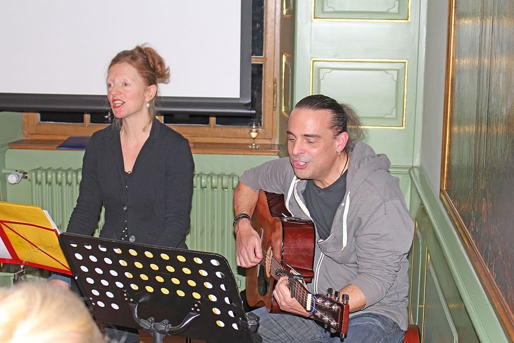 Rolf Ersfeld bei der Buchnacht "Literatur & Musik" am 11. November 2016 in Basel mit musikalischer Untermalung durch Andri Leonardo (Gitarre) und Sibylla Breitenstein-Frey (Gesang)