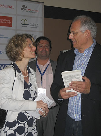 ... und bei der Begrüßung der rheinlandpfälzischen Wirtschaftsministerin Eveline Lemke, die - sehr interessiert - auch eines seiner Bücher mitnahm.